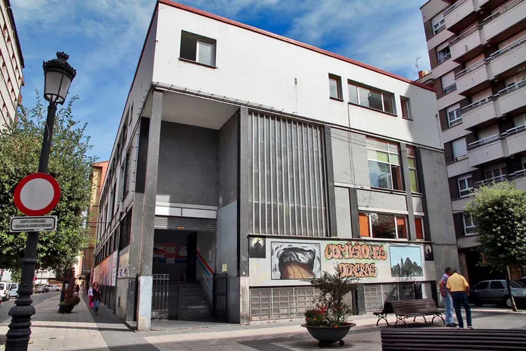 Cine Sindical. Época: 1963. Uso actual: sindical. Descripción tipológica: Ubicado en una zona de fuerte desarrollo urbano de La Felguera a comienzos de los años sesenta, el edificio contó con una amplia parcela en la que pr&# ...