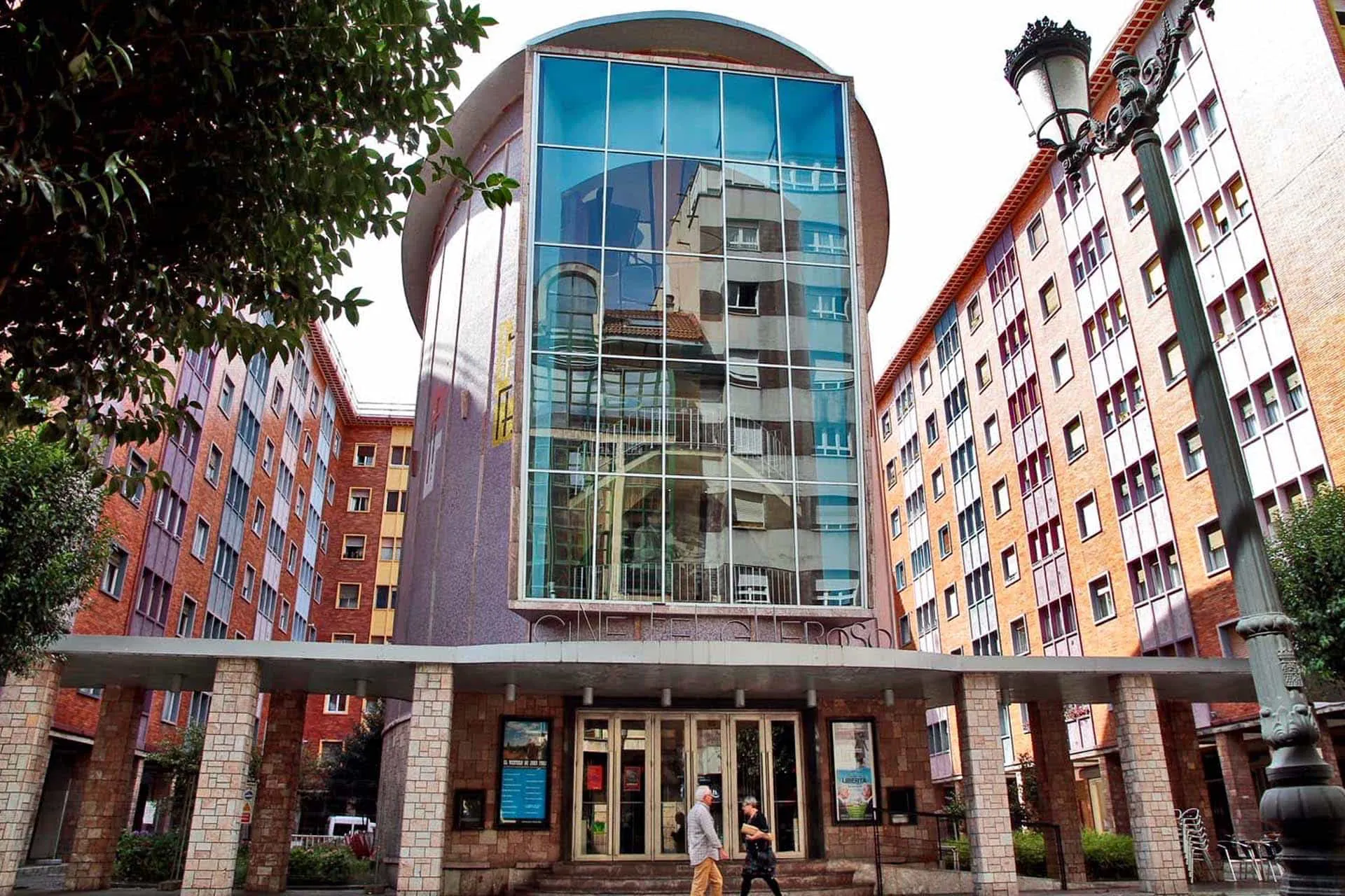Cine Felgueroso. Época: 1954 (proyecto) - 1959 (inauguración). Uso actual: centro audiovisual. Descripción tipológica: Se trata de un volumen de planta elíptica concebido como una pieza singular, dentro de un conjunto de vivi ...